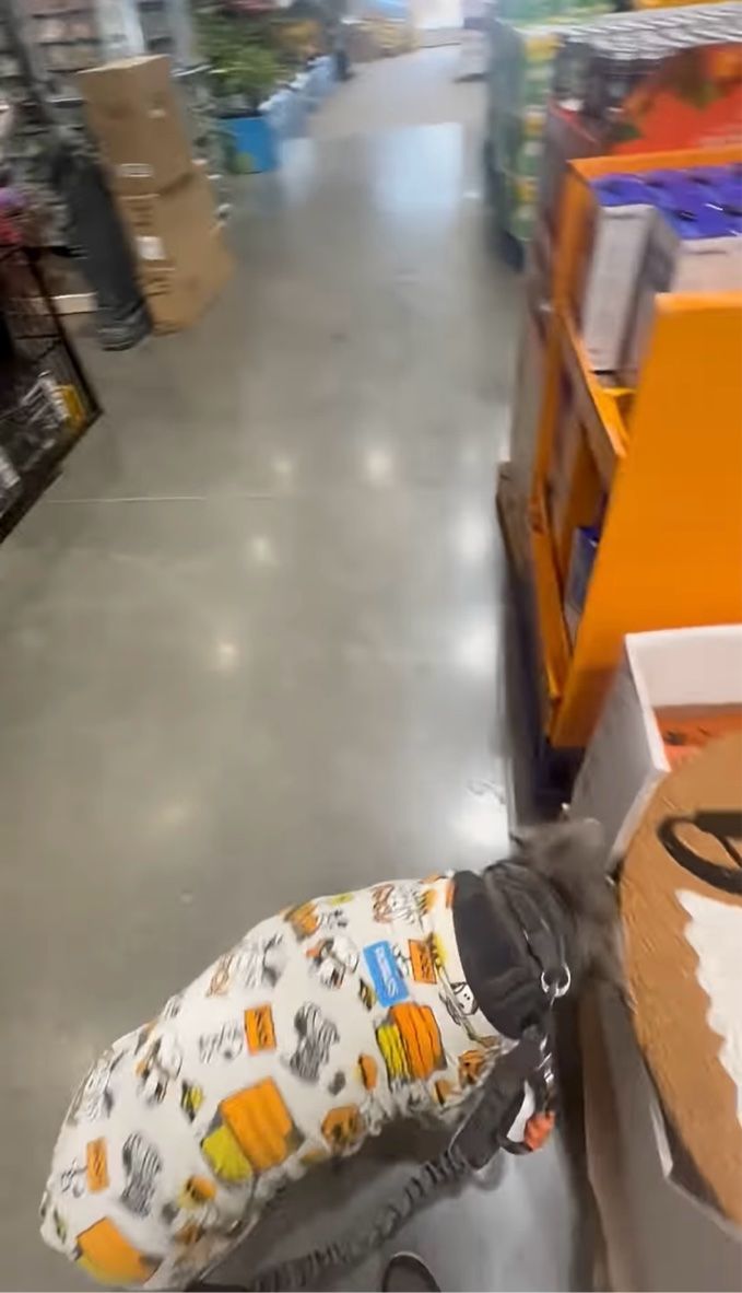 ホームセンターに愛犬とやって来た撮影者さん。 愛犬がハロウィンのデコレーションに興味津々な様子を撮影していました。