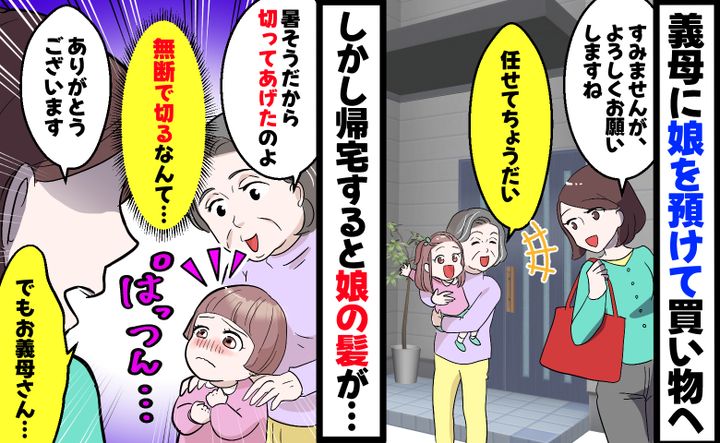 義母に3歳の娘を預け外出「切ってあげたわ」え!?肩まであった髪が短く…娘も不安な顔。私は義母に