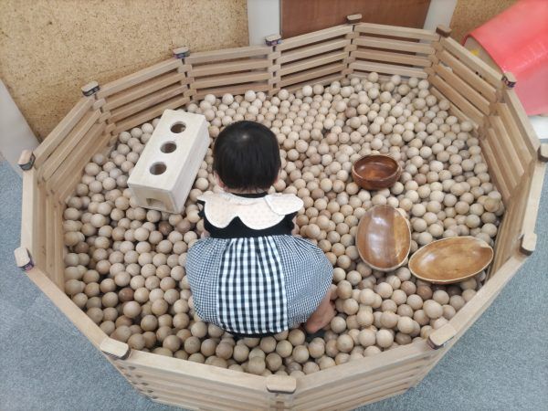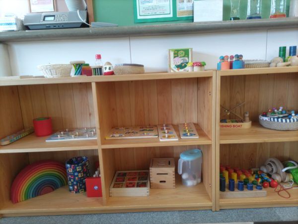 子どもの月齢や成長に合わせて遊べる、色々なおもちゃが準備されています