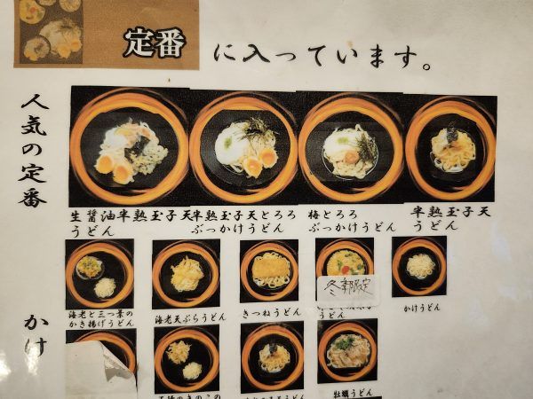 こちらのメニューの写真はほんの一部ですが、温かいうどんや生醤油うどんにざる、釜揚げうどんでざっと数十種類ありました。