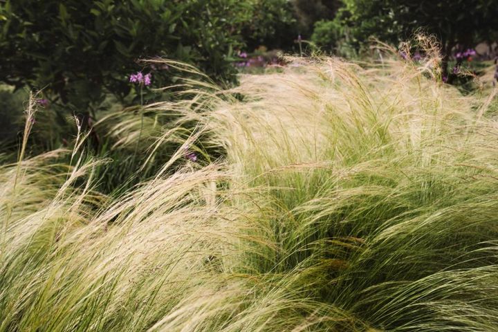 中央アメリカなどに自生する雑草のなかで観賞価値の高いものをスティパと呼んでいましたが、いまはナセラ属などに分類されています。なかで繊細な雰囲気の‛エンジェルヘアー’は一番人気。大株に育っても倒れ込んでかさ張らず、周囲の草花を優しく包んで浮かび上がらせます。