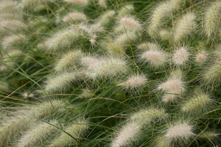 キツネの尻尾を思わせる柔らかな穂を、夏から次々に立ち上げて涼しげな雰囲気です。アフリカ原産なので寒さには弱いものの、マイナス10℃以上あれば地植えで冬越しできます。乾燥気味に育てると、秋にもふんわりとまとまりよい草姿に。ほかの草花との混植もしやすいグラスです。