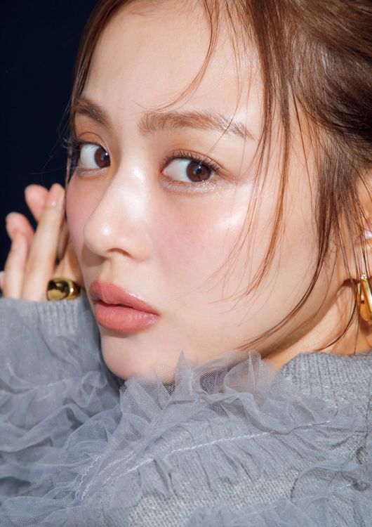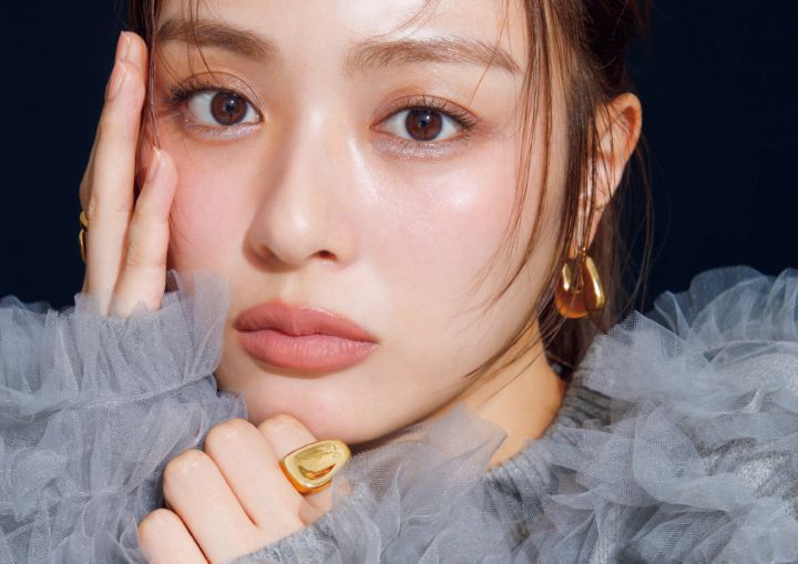 チュールニット¥24,200/HONEY MI HONEY ピアス¥4,290/ieLS、リング[左手]¥2,530/シースキー、リング[右手]¥3,300/ヘンカ(以上ロードス)