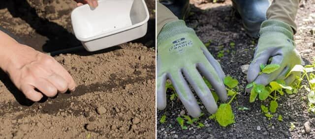 ▲この日はラディッシュの種まきと、間引きをおこないました