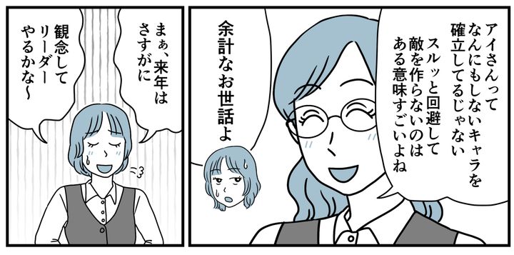 あれだけこっぴどく叱られた後だから気まずいです。けれどミサキさんが「言いすぎた」と謝ってきました。私たちは軽口を叩きあったあと、お互い顔を見合わせてフッと笑います。そして私が来年はリーダーをやるつもりだと伝えると……。