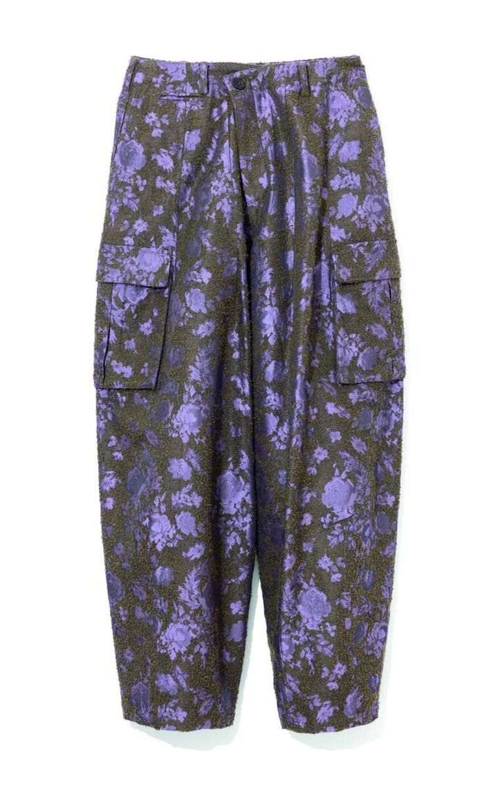 パープルのサテン地にグリーンのジャガードを纏わせたデザインは、まるでアートピースのよう。10万8900円(DAWEI/メゾン・ディセット)