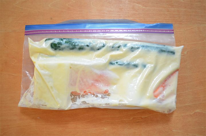 今回は材料を直接保存袋に入れましたが、事前にボウルなどに入れて混ぜ合わせておくと均等に混ざりやすいですよ♪