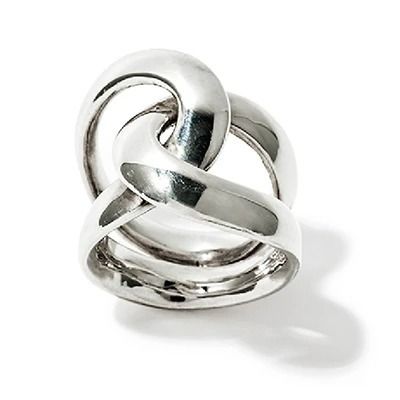 シルバーリング/e.m. 螺旋を描くように歪曲した、彫刻的なデザインが目を引くシルバーリング。計算されたアシンメトリーな美しさが、さりげなく指先の存在感を高めてくれる。重ねづけせずとも1つで完結する佇まいは、シンプルな装いに知的なニュアンスを添えてくれる。