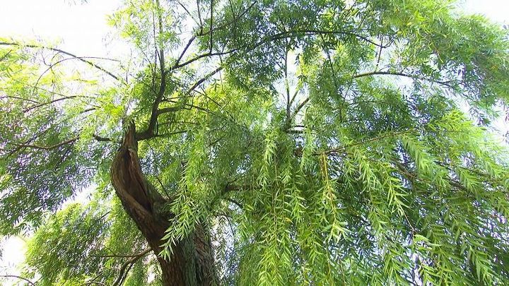 原爆ドームから約300メートルの場所にある、1本のシダレヤナギの木。被爆樹木です。
