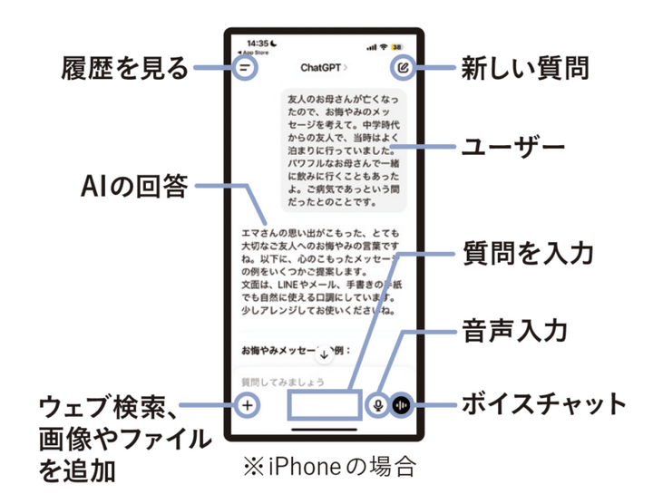 レシピの提案から文章の作成など「近所の物知りさん」に尋ねるつもりでOK。
