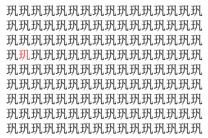 【脳トレ】「㺬」の中に紛れて1つ違う文字がある!?あなたは何秒で探し出せるかな??【違う文字を探せ!】