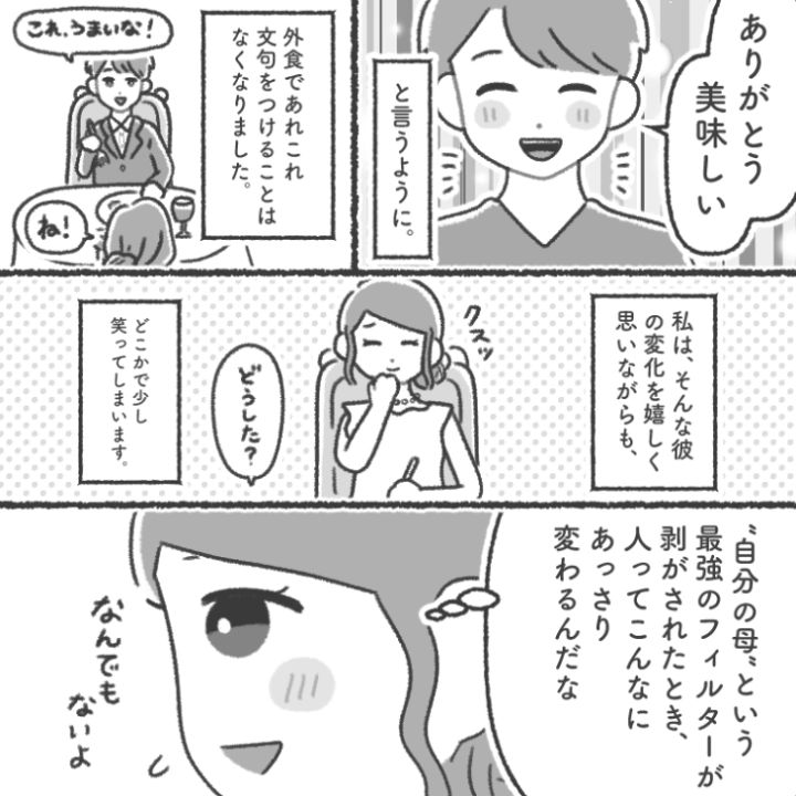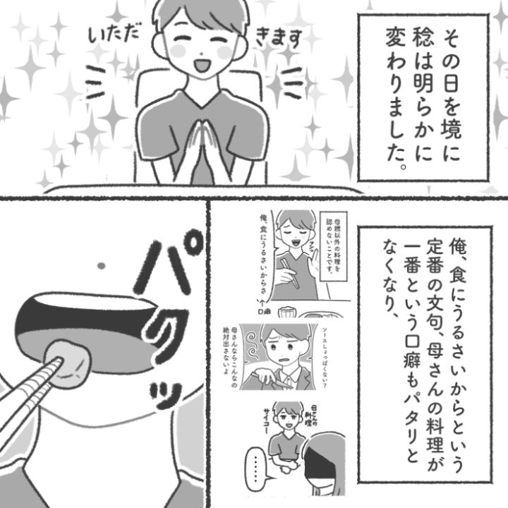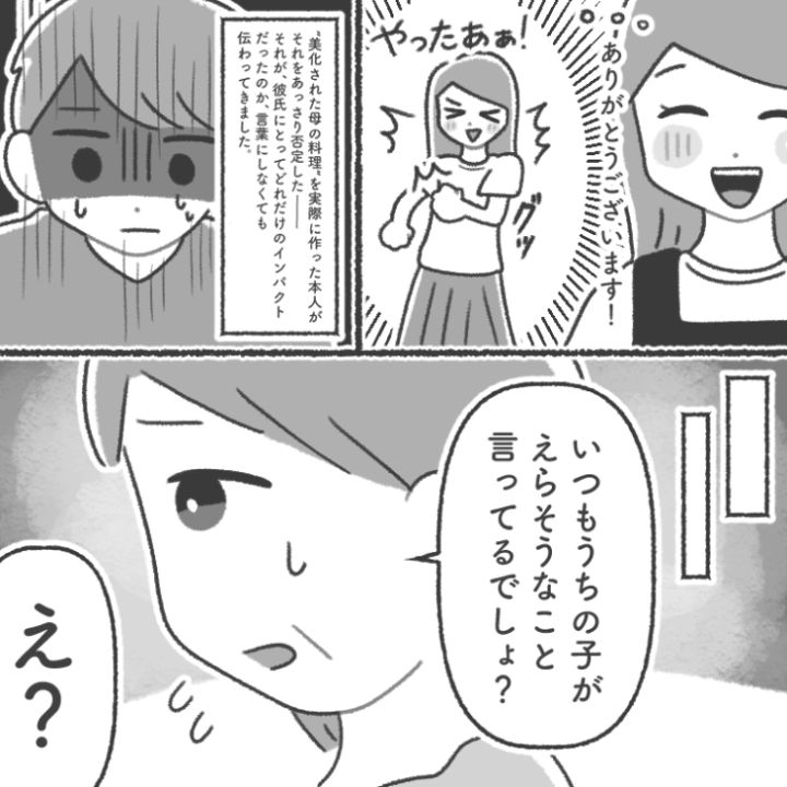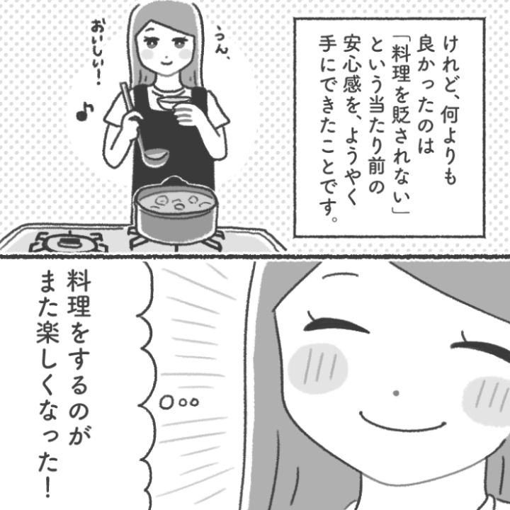 彼母が褒めてくれたことをきっかけに彼氏も自分の行動を見直してくれた様子。今では料理を作るのがまた楽しくなった主人公でした。