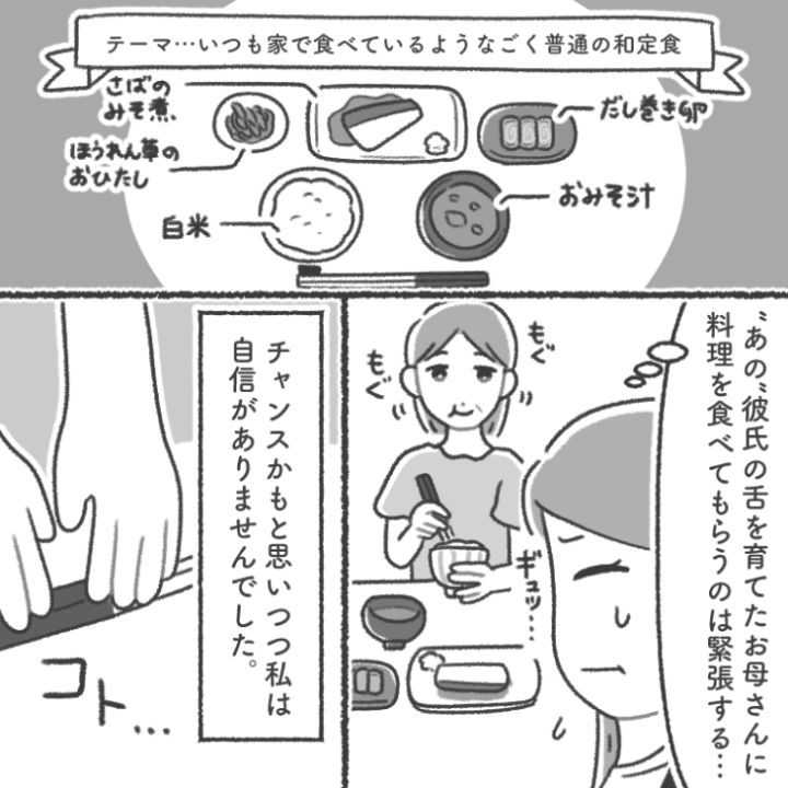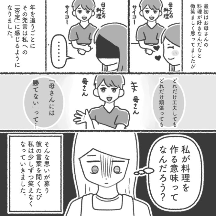 「母さんはこんな味付けしない」母親の料理を盲信する彼氏は私の料理を全否定!何を作っても文句でうんざり→彼母が私のご飯を食べて言った思わぬ一言で救われた話
