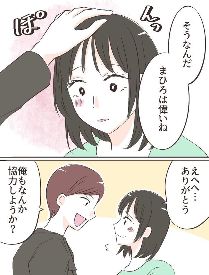 するとタモツはぽんっと私の頭に手を置くと、「そうなんだ。まひろは偉いね。」と優しく言ってくれたのです。それに、「俺もなんか協力しようか?」とも。私は嬉しくなりました。