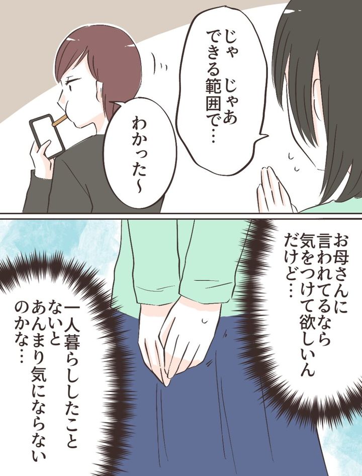 「じゃあできる範囲で」とお願いすると、タモツは「わかった~」と言いましたが、その言い方や表情でやる気がないことは明らかでした。お母さんに言われているなら気をつけて欲しいんだけどな。ひとり暮らしをしたことがないと、あまり気にならないのかな。私は少し寂しい気持ちになりました。