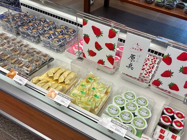 1933年創業の六花亭。長く愛されるスイーツをはじめ、2025年7月に登場した新作菓子などさまざまなアイテムが並びます。