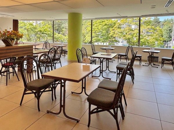 喫茶室は大きな窓から明るい光がたっぷりと注ぎ、開放的!晴れ渡る気持ちになります。