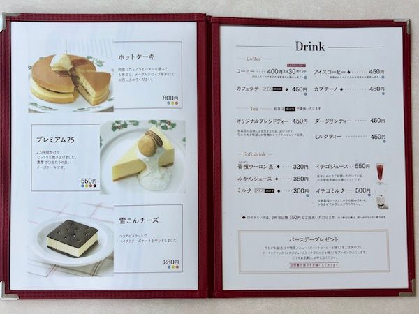 スイーツとドリンクメニュー