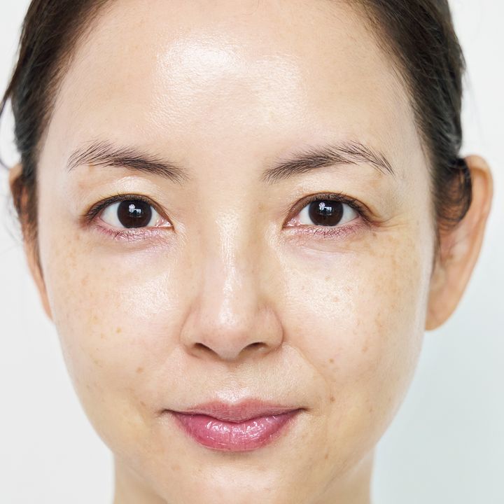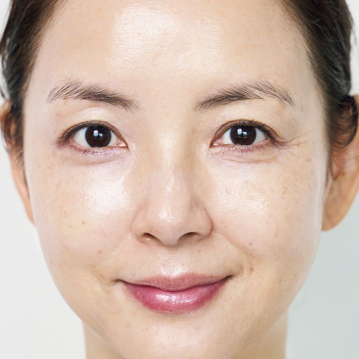 40代はパープル下地でくすみ、赤みを取り去る。