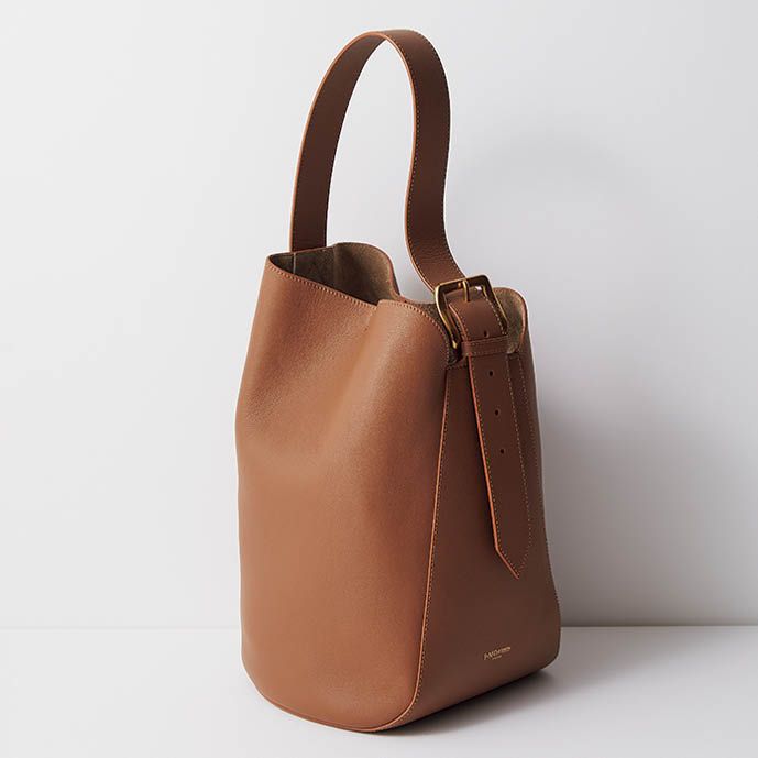 ブランド定番モデルのカーニバル。バケツ型で、上部が開いているので出し入れがしやすく使い勝手がいいのに、キレイ見えします。今年の新色は、ライトブラウン。バッグ[H35×W23×D22㎝]¥198,000(J&M デヴィッドソン/J&M デヴィッドソン カスタマーセンター)