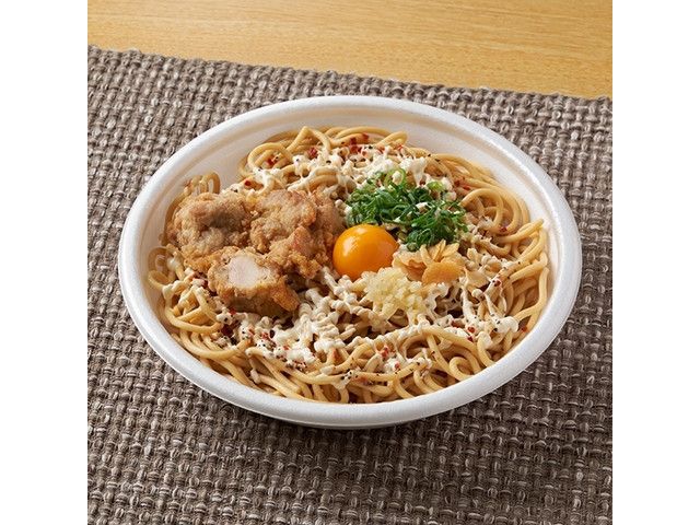 ファミリーマート 大盛 太麺! 月見唐揚げにんにくマヨパスタ