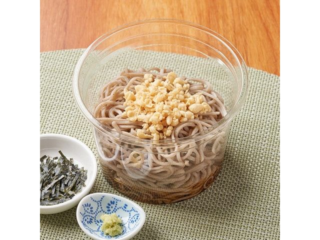 歯切れの良いそばにだしのきいたつゆを合わせ、揚げ玉・刻みのり・わさびを添えた、お手頃価格で小容量サイズの商品です。 ※宮崎県、鹿児島県では取り扱いがございません。