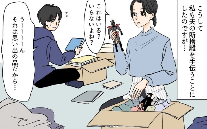物を捨てられない夫がしょぼん…出産前の妻と夫との断捨離バトルの勝者は…!?
