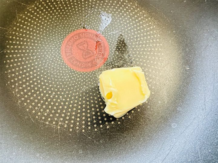 スイーツなので、バターはしっかりめに。もう少し塗ってもいいかなと思いますが、今回はこれぐらいでフライパンに広げていきます。
