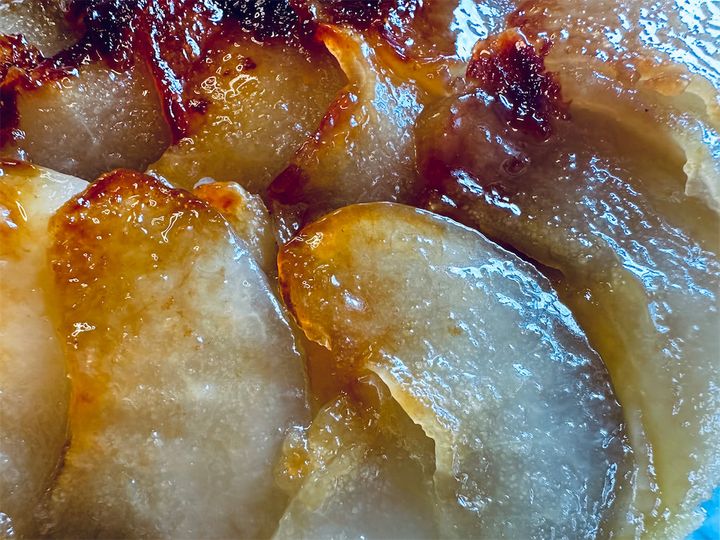 じっくりキャラメリゼされた梨が、とろ〜り甘くてジュワッとジューシー。 ほんのりビター風味なのもたまりません♡
