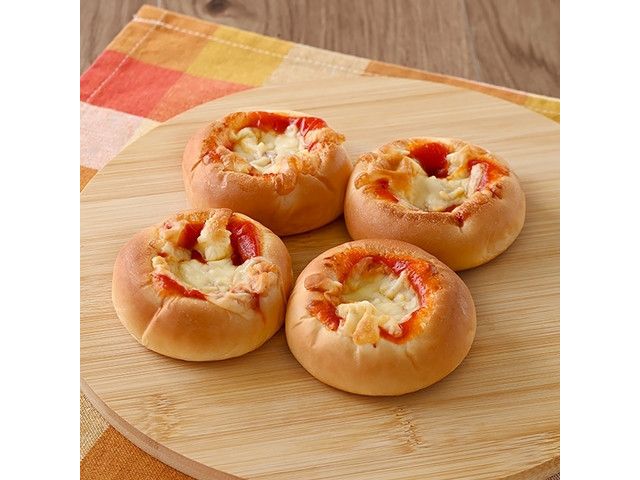 ベーコン入りのピザフィリングを包み、ピザソースとシュレッドチーズをトッピングしたミニサイズのピザパン4個入りです。