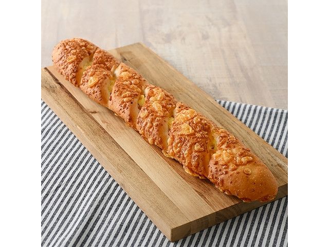 風味豊かなフランスパン生地に、ハムとチーズクリームを包み、粉チーズをトッピングして焼き上げた惣菜パンです。