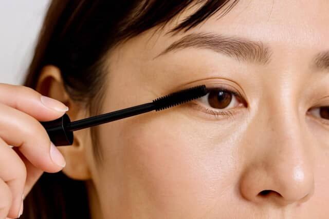 ボリューム重視よりもセパレートで繊細に仕上げるのが大人の正解。下まつ毛にも軽く塗ると、縦のバランスが整い、目がぐっと大きく若々しく見えます。