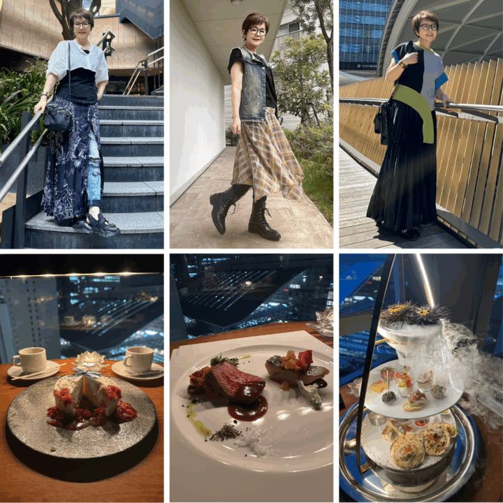 【60代お出かけ・ファッション】色や素材で秋気分!お出かけスカートコーデ3選と「梅田ブルーバード」の美しい料理を堪能!