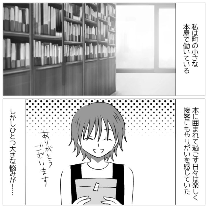 主人公は町にある小さな本屋で働いています。大好きな本に関する仕事ができてやりがいを感じていたのですが・・・。