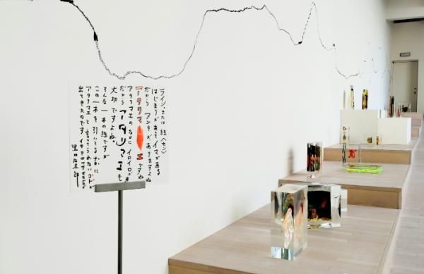 作品の解説パネル(キャプションパネル)も見所の一つ。思わずクスッと笑ってしまう、ユーモアある文章です。また、文章だけでなく、色文字や絵が描かれているものもあります。パネル自体が作品のようです。キャンバスの絵だけではなく、スケッチブックやメモ紙の絵、アクリル作品も随所に展示されています。