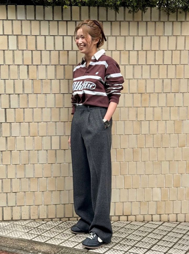 「ともすると、カジュアルになり過ぎてしまうUSEDアイテムとスニーカーの組み合わせですが、キレイめのウールパンツを合わせバランスを。さらにジュエリーをプラスすることでラフだけど上品なコーディネートに仕上げたところがポイントです」
