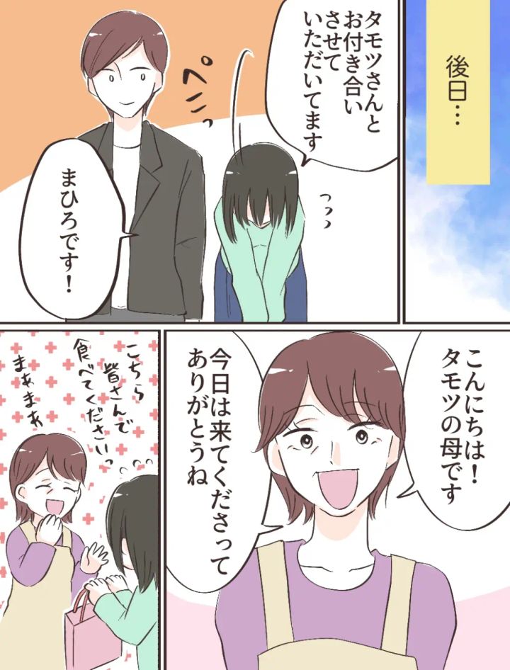 しばらくしてタモツの家を訪れると、明るくてさばさばした感じのお母さんと初対面しました。きちんと挨拶をし、手土産を渡しました。