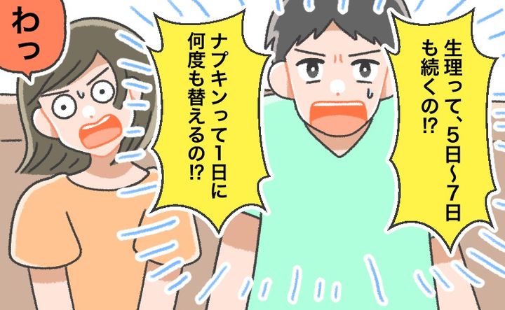 「生理って平均5~7日も続くの!?」「ナプキンって1日に何度も替えるの!?」ととても驚いている様子!
