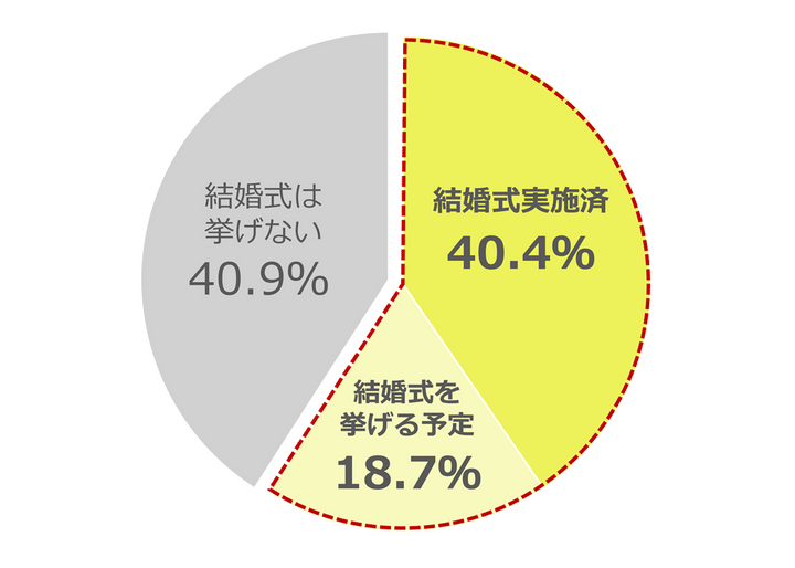 マイナビウエディングの調査によると、結婚式を挙げた・挙げる予定というカップルは、全体の59.1%という結果に。