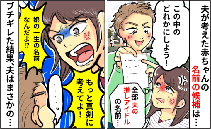 娘の名前候補を見せてきた夫「は?全部推しアイドルの名前じゃん!」思わずブチギレると衝撃の展開に