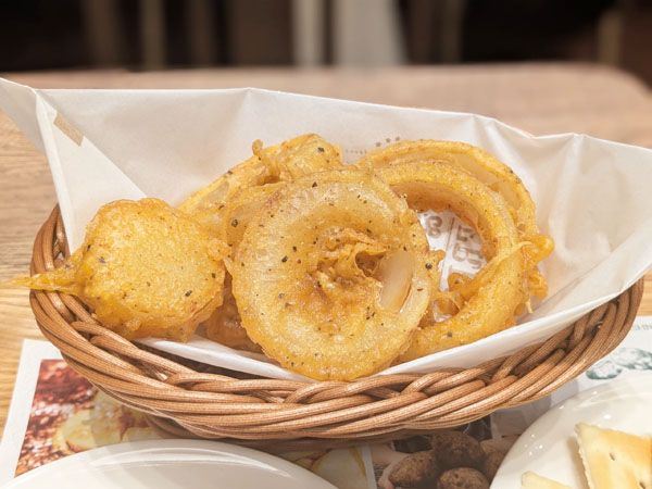 このオニオンフライはなんと秋冬限定商品! 春に獲れる新玉ねぎは水分を多く含んでいるので、味わいが変わってしまうんだとか。今しか味わえないので、こちらもぜひお試しを。