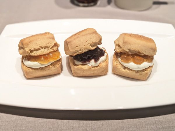 スイーツには、現在提供されている揚げたてチュロスに加え、新たに作りたてスコーンサンドが仲間入り。