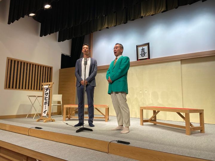 ここで、藤崎さんと漫才をさせてもらいました!ミルクボーイをリスペクトする『アサヒボーイ』として!