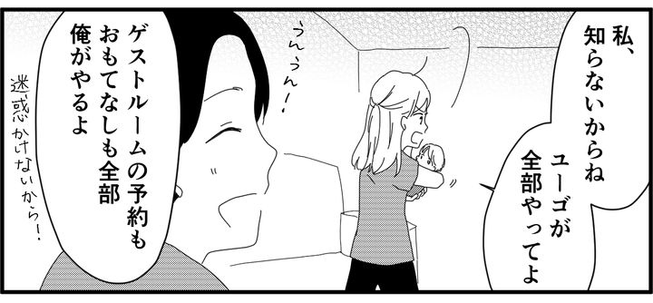 ただでさえ娘がいるから泊まりに来られるのは困るというのに、よりによって台風の日に……。しかし夫はノリノリで、「自分が全部おもてなしをするから」とやる気満々です。
