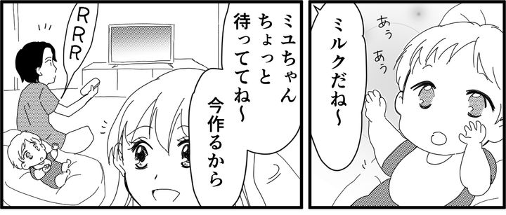 私は娘のためにミルクを用意し始めました。夫はテレビを見ています。すると夫のスマホが鳴りました。