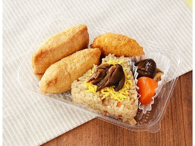 いなり寿司と季節のちらし寿司におかずを添えた、手軽に食べられる寿司セット。