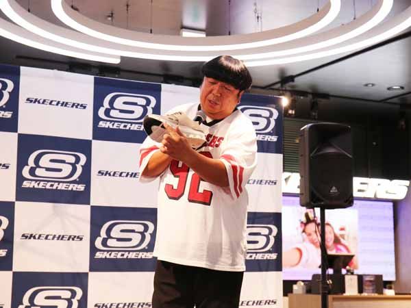 さらに、自分の番組のロケで歩き回るときもスケッチャーズを愛用していたことを明かし、実生活でも頼れる一足だとアピール。「この快適さと楽しさをぜひ体験してほしい」と来場者に呼びかけました。