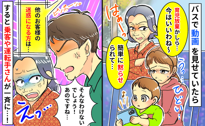 「育児放棄?私の時代は…」バスで動画を見せていると後ろの女性が小言を…え!?乗客や運転手が口を開き