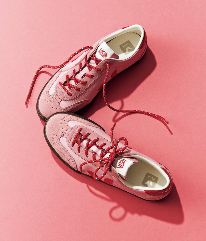 元気色にスエードが上品さをプラス。スニーカー〈ソール高2cm、ピンクの靴紐付き〉(ヴェジャ/シードコーポレーション)