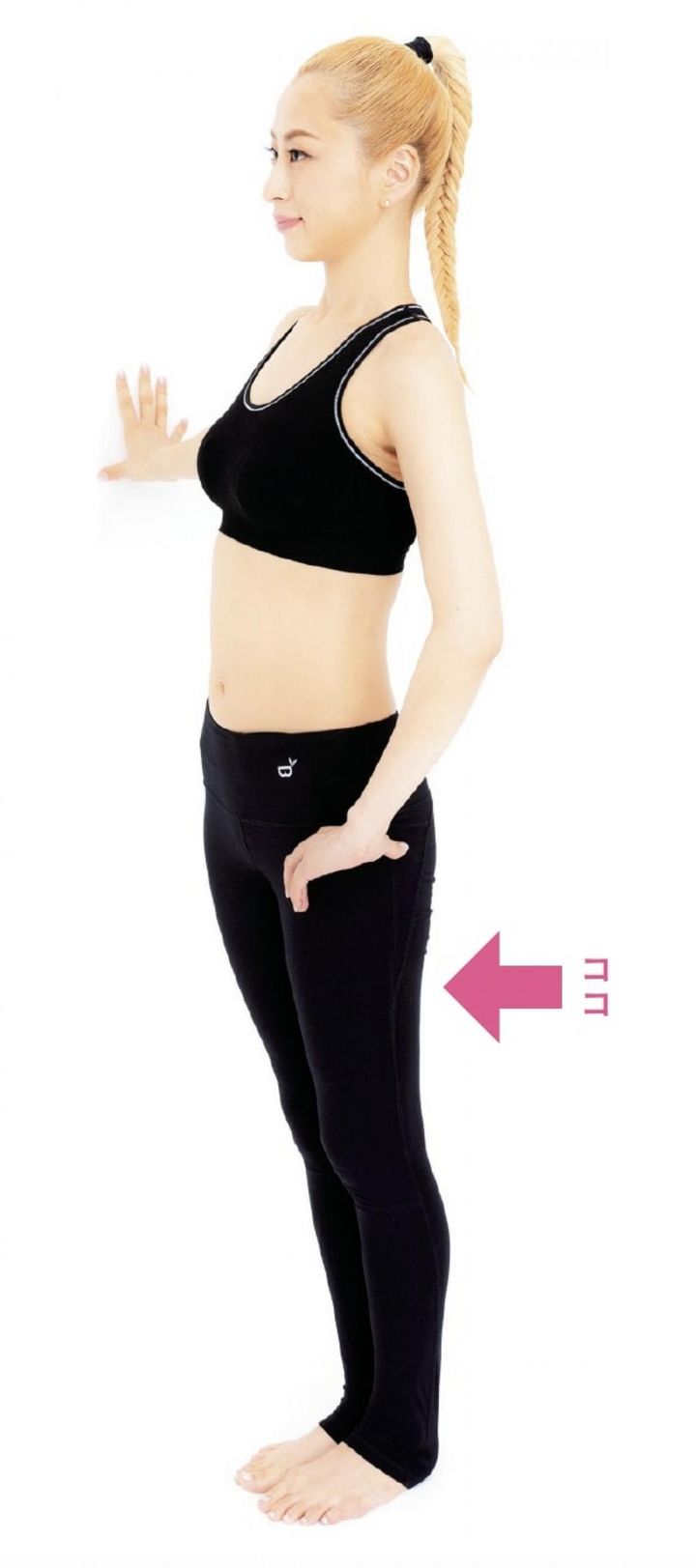 3 息を吐きながらおしりを突き出して腰を落とし、屈伸